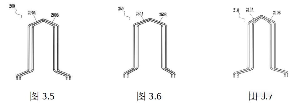 (1) For example (Fig. 3.2) long and short pitch windings refer to: between layers a and b or between layers e and f, the crown end adopts two formed conductors, such as (Fig. 3.5) long pitch conductor 200A is set in Outside the pitch conductor 200B, the pitch of the long pitch conductor 200A is 7, and the pitch of the short pitch conductor 200B is 5.