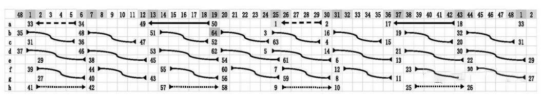 (3) As (Figure 2.4), the same short-distance winding can also be bridged forward at (43g-2h), and the bridge line becomes (2h-44h).