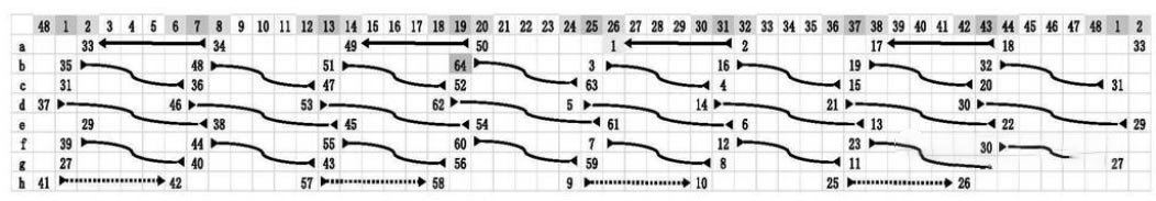Fifth subwinding segment; (48a-7a), (1b-7c), (1d-8e), (2f-8g), (2h-8h)