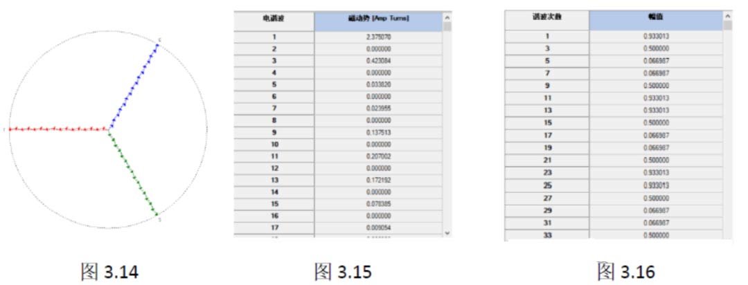 Double-layered winding: The winding potential diagram is shown in Figure 3.14, as shown in Figure 3.15. Because it is a double-layer winding, the single-turn winding MMF should be 2.375/2=1.1875, which is slightly smaller than the single-layer winding single-turn MMF of 1.21. This also cites the principle of maximum potential superposition mentioned earlier. As shown in Figure 3.16, the winding coefficient of 0.933 is slightly smaller than the single-layer winding coefficient of 0.965, but the 5/7th harmonic 0.066 is also much smaller than the single-layer winding 0.258.
