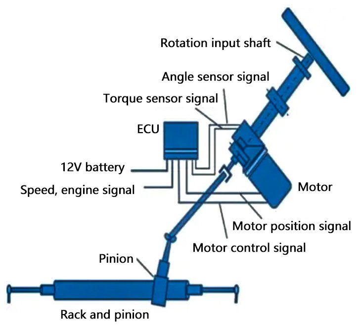 ②Angle sensor: used to detect the steering direction and position of the steering wheel in real-time. The torque sensor is used to detect the steering wheel torque in real-time and transmit the signal to the EPS control unit. The accuracy of the angle and torque sensors determines the performance reliability of the electric power steering system.