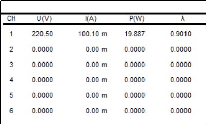 Active power measurement range | 50A current specification: 11mW~11kW@220V, PF=0.01~1 Optional: 20A current specification: 2.2mW~4.4kW@220V, PF=0.01~1 10A current specification: 1.1mW~2.2kW@220V, PF=0.01~1 5A current specification: 0.4mW~1.1kW@220V, PF=0.01~1 2A current specification: 0.2mW~440W@220V, PF=0.01~1 1A current specification: 0.1mW~220W@220V, PF=0.01~1 | |